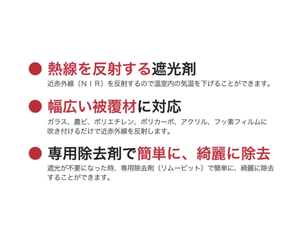 温室やハウスの被覆材に塗布する遮熱剤です。