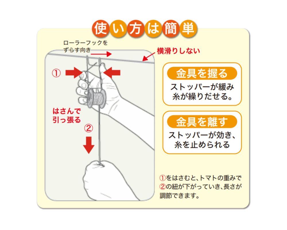 誘引ワイヤから落ちにくいデザインになっています。