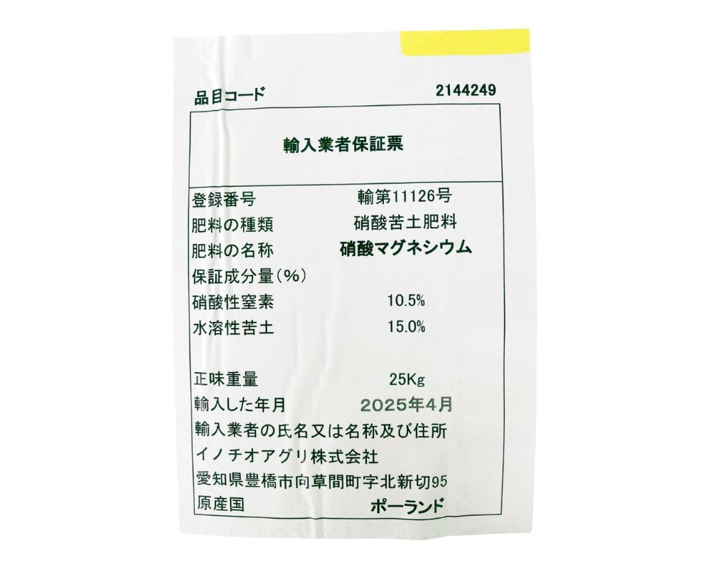 ヨーロッパ産の硝酸マグネシウムです。
